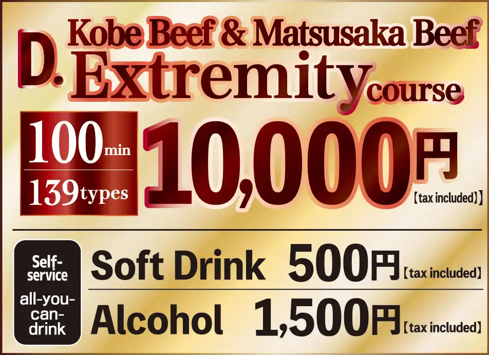 高級部位である黒毛和牛ランプやイチボ、きめ細かい霜が降った黒毛和牛リブサーロイン、圧倒的迫力のとろける厚切り牛タンなどが全て食べ放題に含まれる高級感あふれるコースです。事前予約で和牛肉パフェを無料サービスしております。ご希望のメッセージを添えて大切な記念日を彩ります。