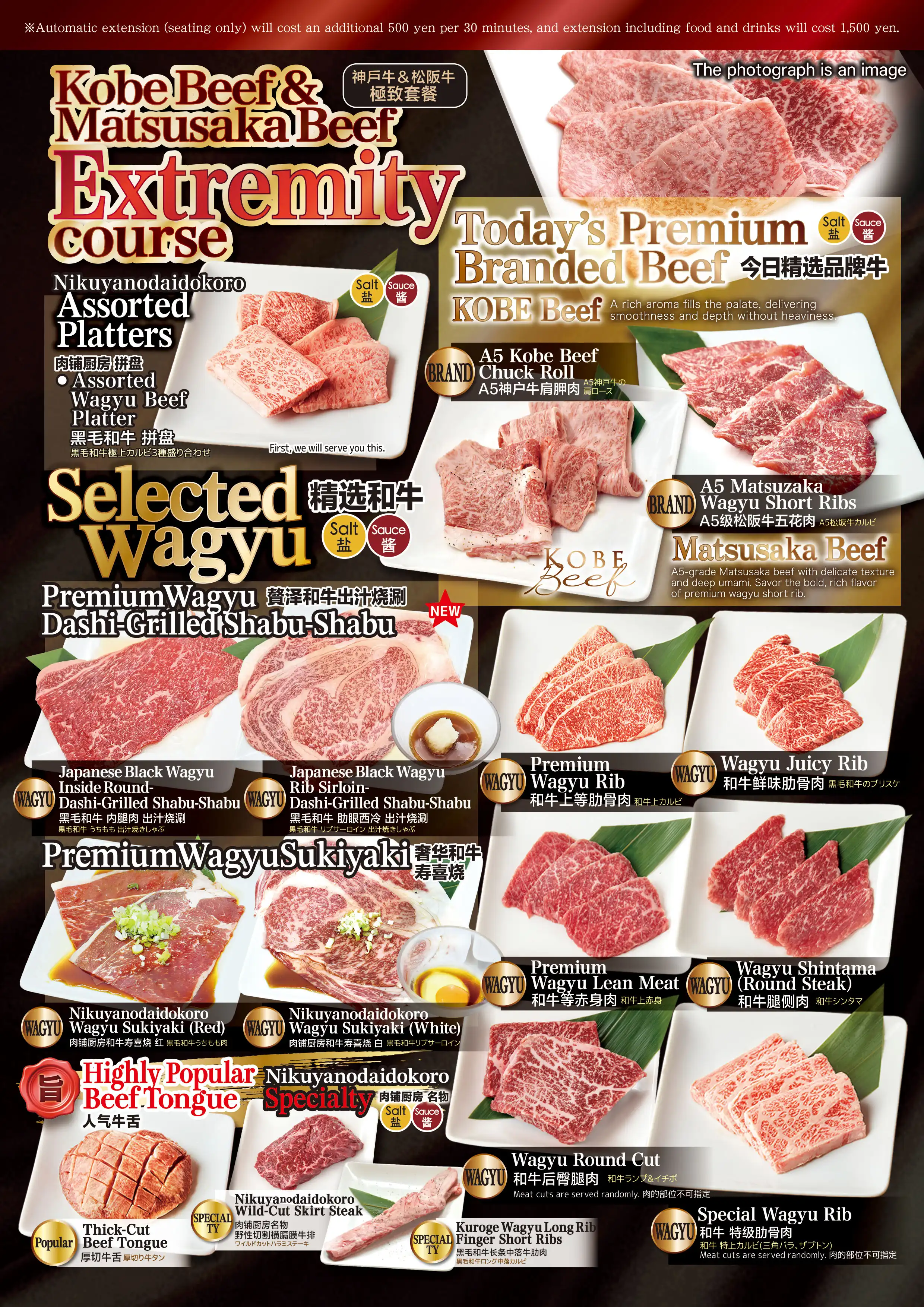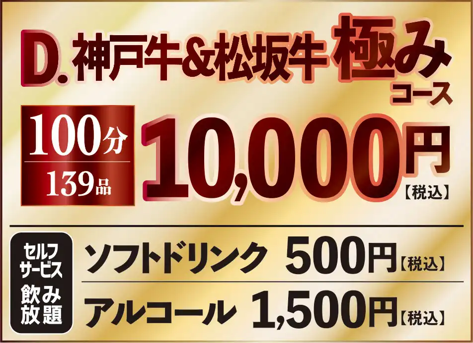 神戸牛は但馬牛の系統で「繊細で美しい霜降り」が特徴。松阪牛は「濃厚な旨みととろけるような甘み」が特徴です。これらの最高級のブランド和牛心行くまでご堪能下さい!事前予約で和牛肉パフェを無料サービスしております。ご希望のメッセージを添えて大切な記念日を彩ります。