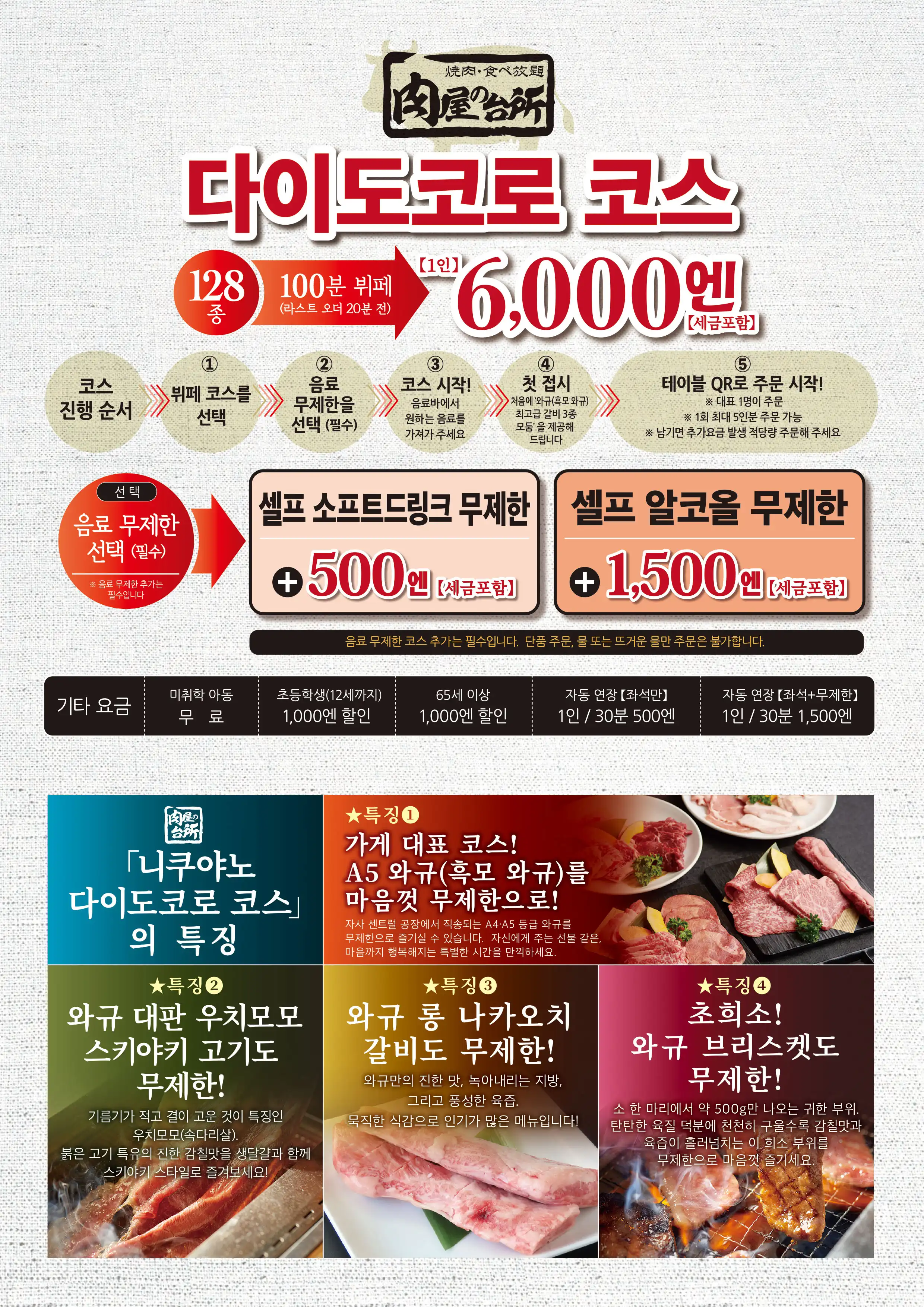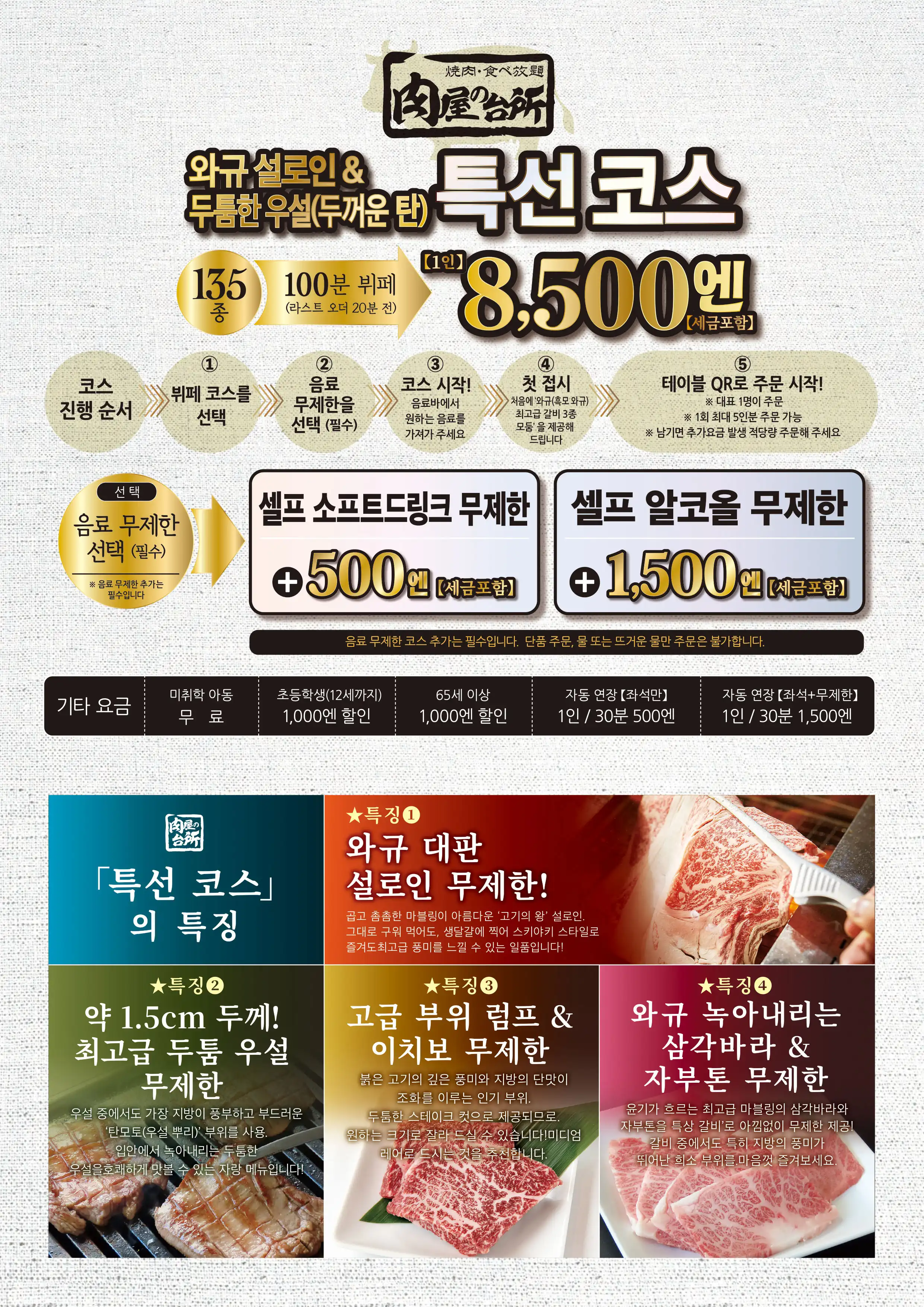 心ゆくまで上質な焼肉食べ放題をお召し上がりください。