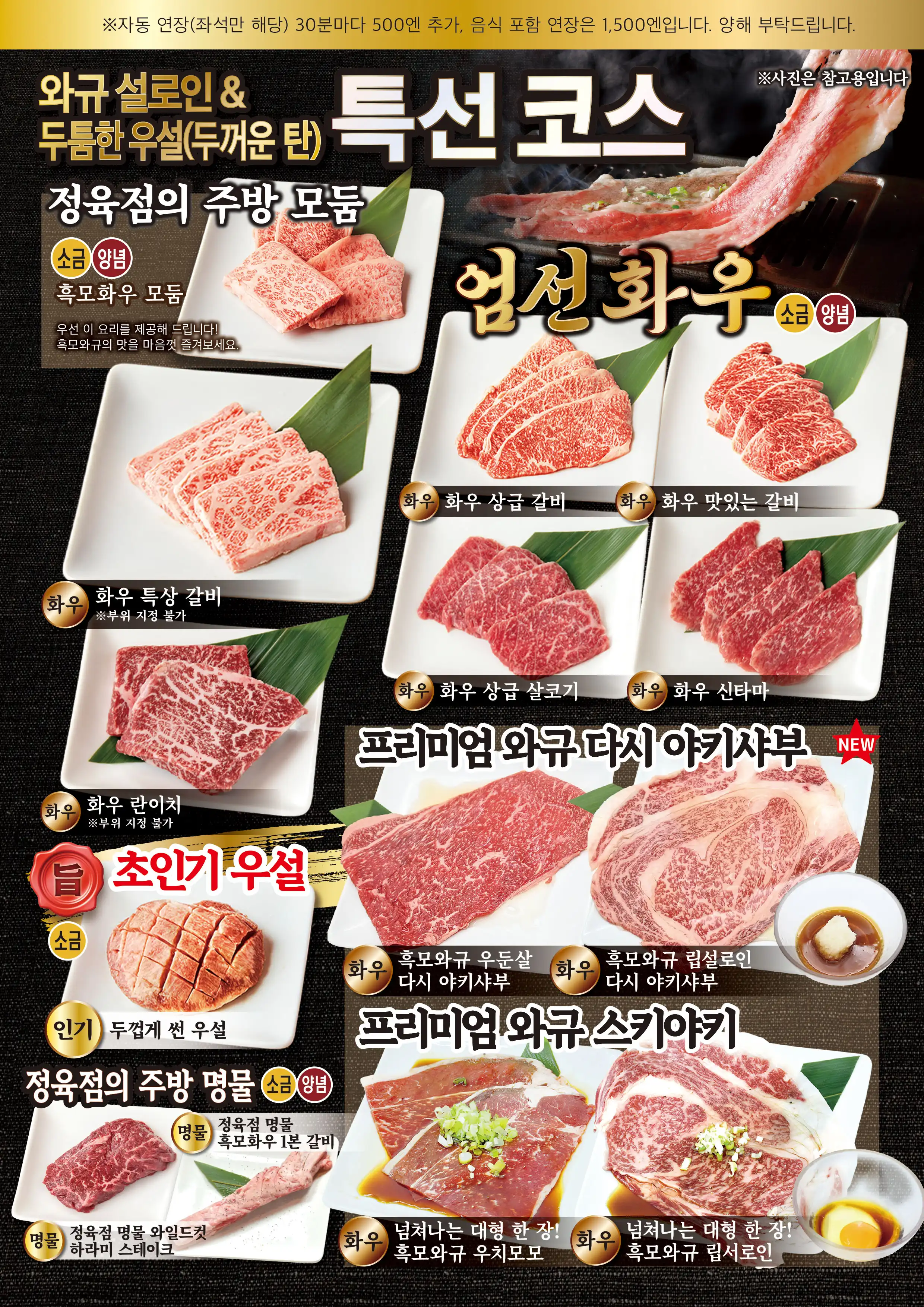黒毛和牛上カルビや上赤身、名物の黒毛和牛ロング中落カルビなど和牛焼肉をとってもリーズナブルに楽しめる当店の一押し看板コースです。人気の牛タンもこちらのコースから!新メニューでは一新した出汁焼きしゃぶ肉に、手仕込みの白菜生キムチが追加!より洗練されたメニューをご堪能ください。さらに花びらのように盛り付けた和牛肉パフェは事前予約で無料サービスしております。ご希望のメッセージを添えて大切な記念日を彩ります☆
